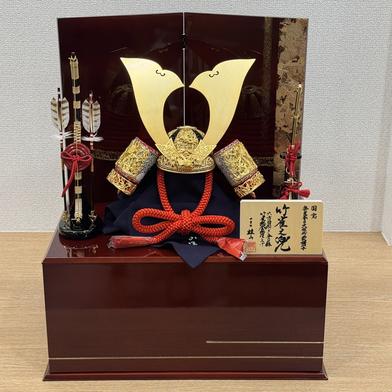 【五月人形】竹雀之兜 15号【サイズ】間口50㎝×奥行35㎝×高さ59㎝【ポイント】人気のある竹雀総金物の兜を15号サイズで製作。甲冑師雄山作。源義経が奈良春日大社に奉納されたと言われる兜を模写。収納箱は高級感のある溜塗で仕上げた。【税込価格】277,200円