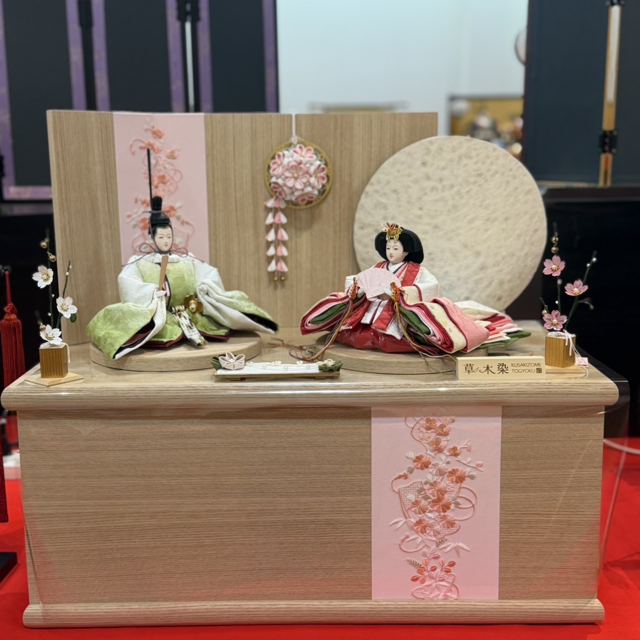 【ひな人形】風奏-草木染【サイズ】間口60cm×奥行33cm×高さ53cm【ポイント】*正絹の生地を手染めした草木染ならではの優しい若草色と桃色の衣裳。丸い和紙はライトがつく仕様です。和紙の温かみのある光に当たるひな人形もより一層輝きます。【税込価格】ご売約済み